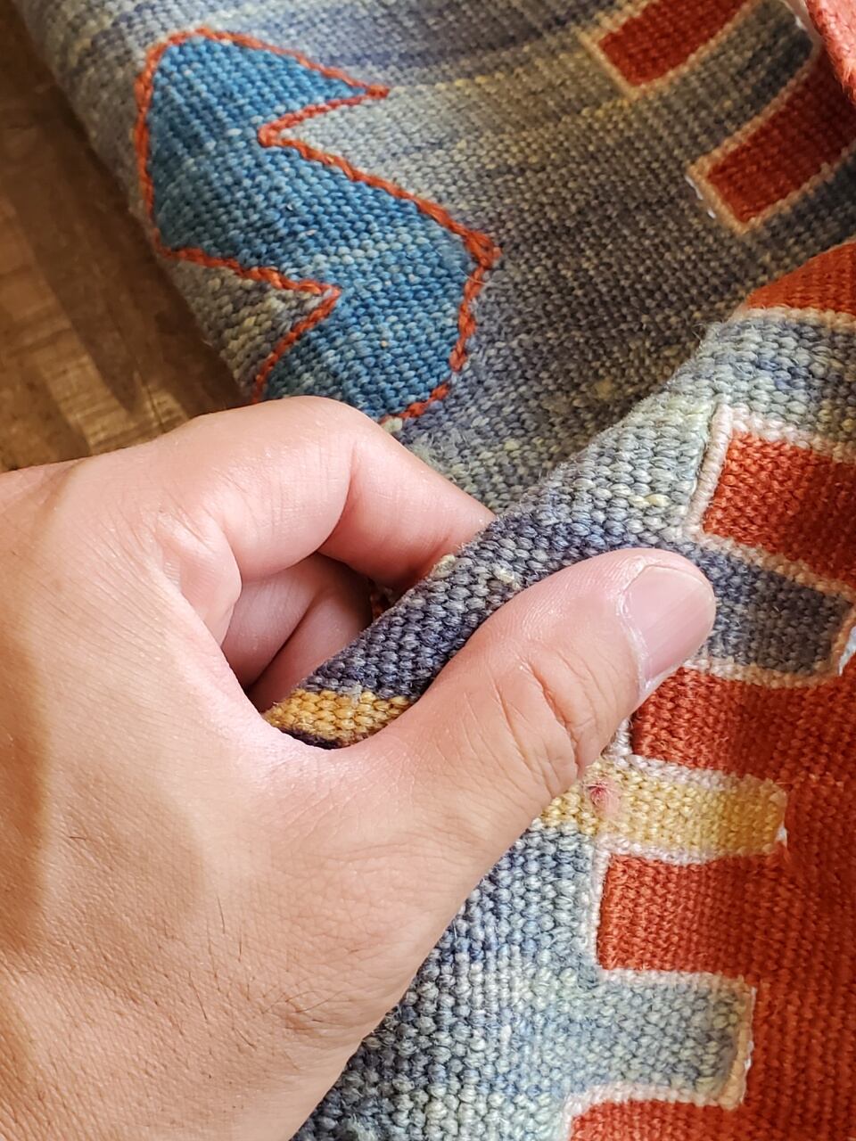 素材:ウール(当店で扱う絨毯は全て手織りです)