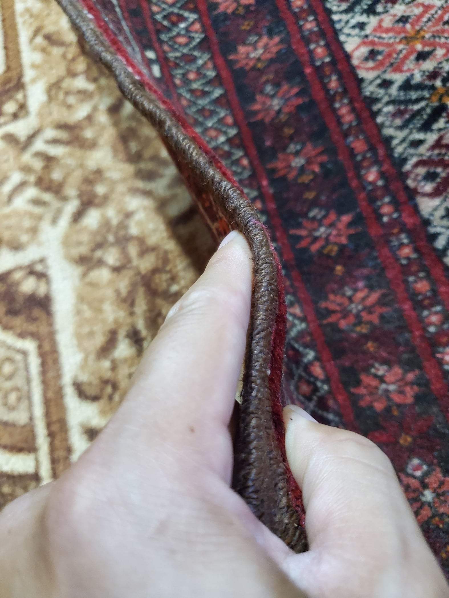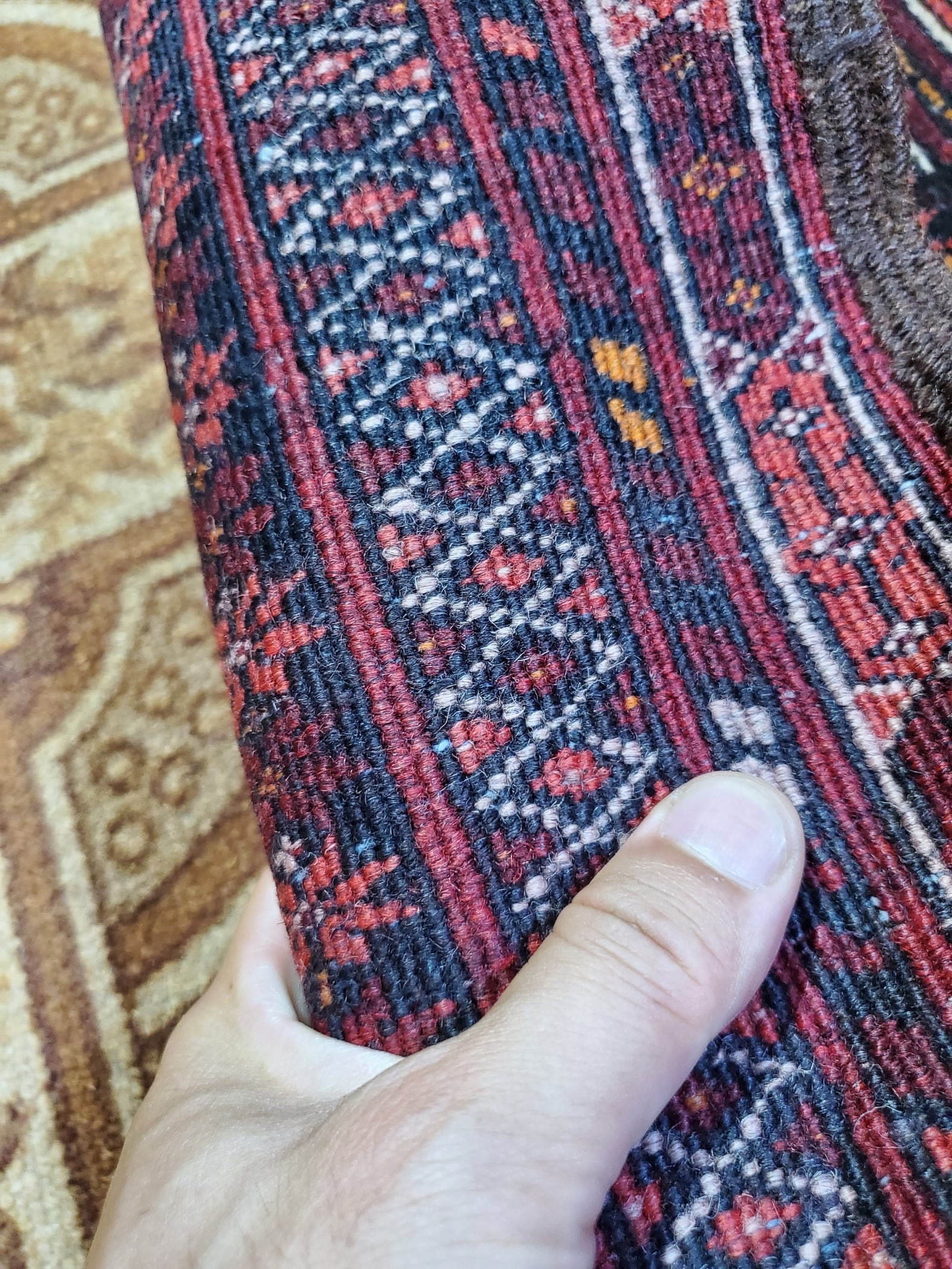 素材:ウール(当店で扱う絨毯は全て手織りです)