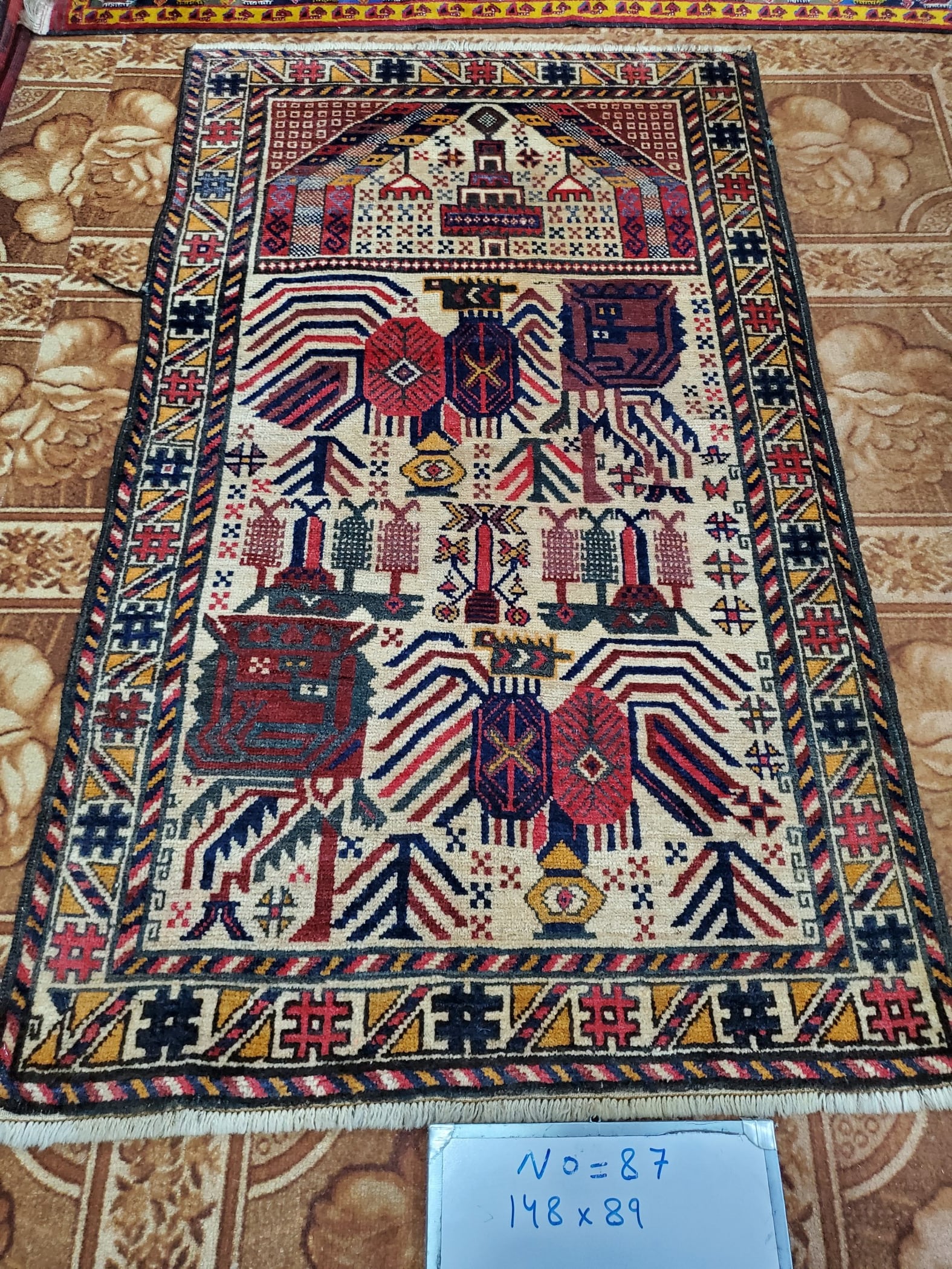 絨毯クエスト73【No.87】 ※現在、こちらの商品はパキスタンに置いてあります。ご希望の方は先ずは在庫のご確認をお願いします。