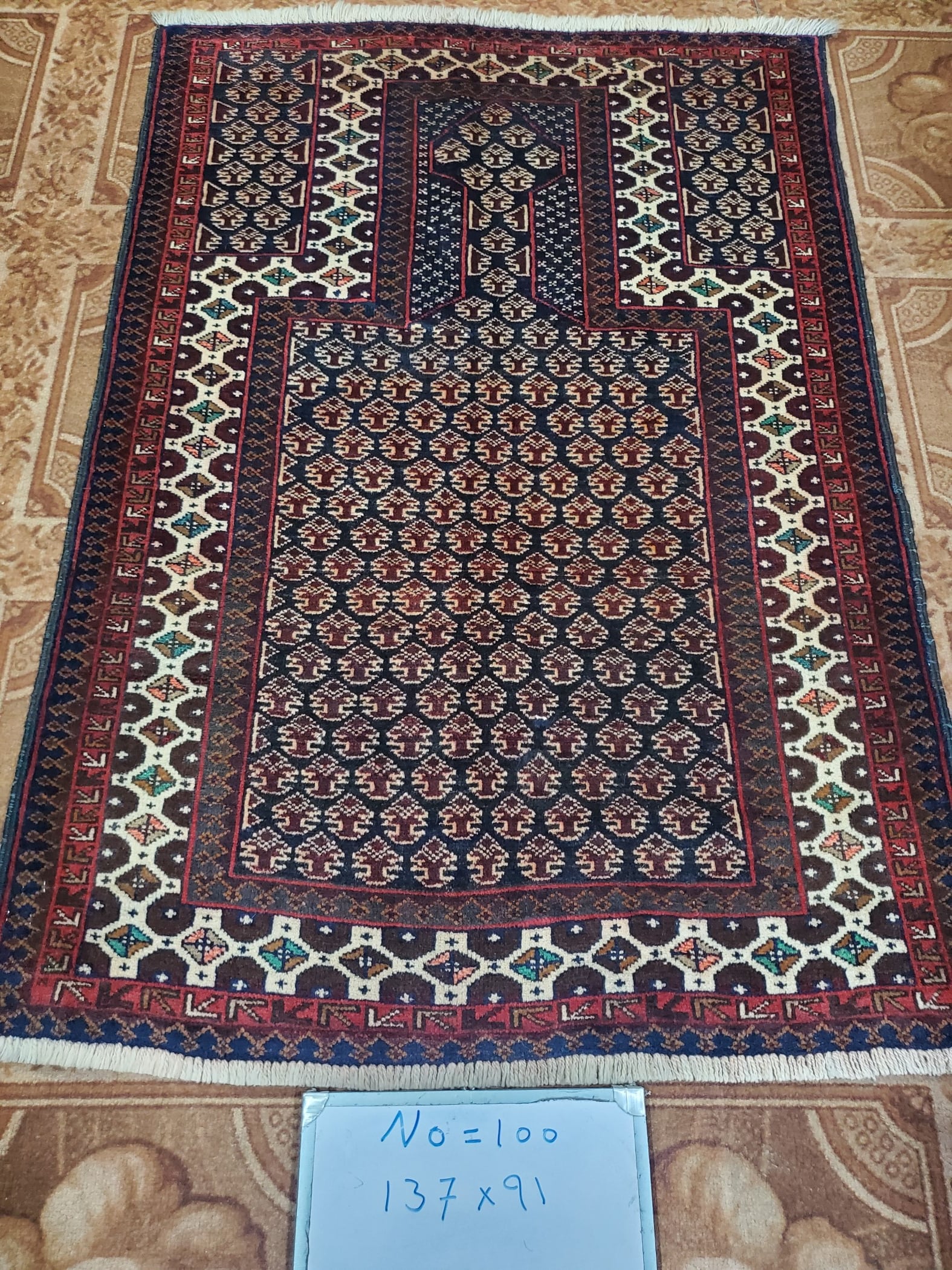 絨毯クエスト73【No.100】 ※現在、こちらの商品はパキスタンに置いてあります。ご希望の方は先ずは在庫のご確認をお願いします。