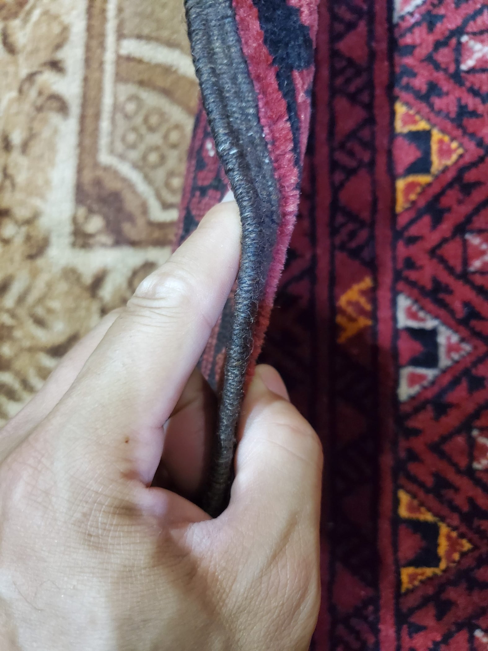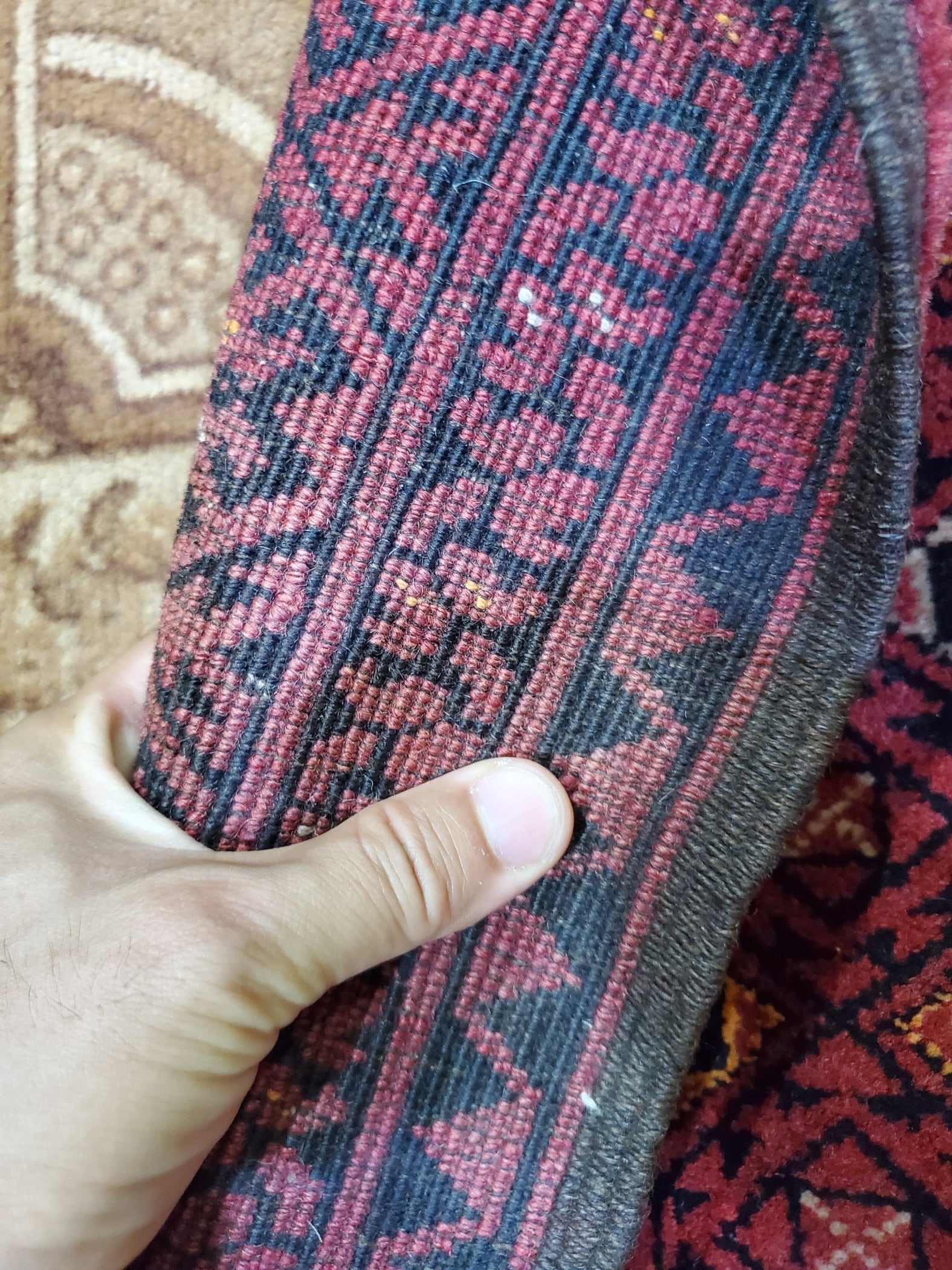 素材:ウール(当店で扱う絨毯は全て手織りです)