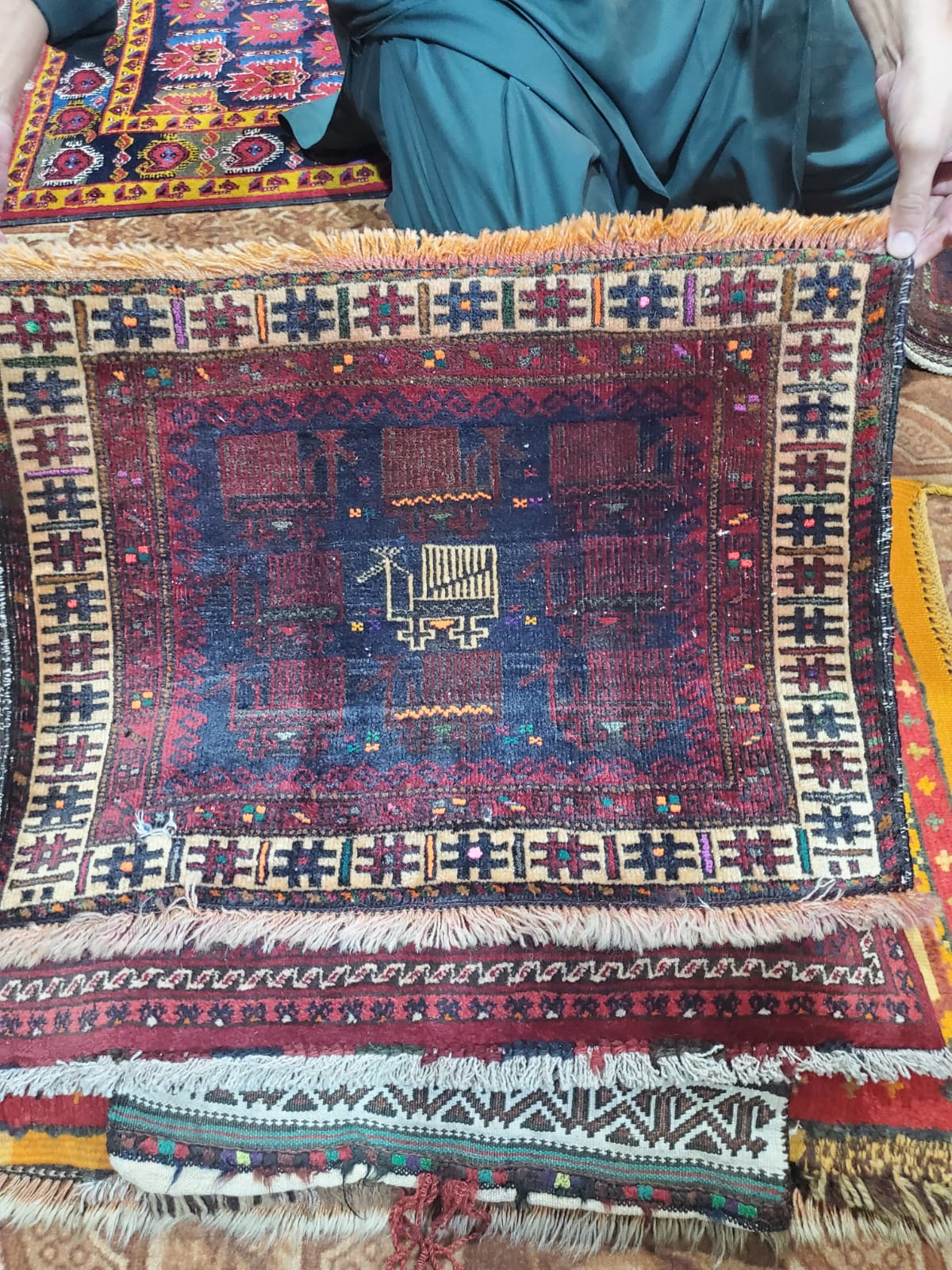 素材:ウール(当店で扱う絨毯は全て手織りです)