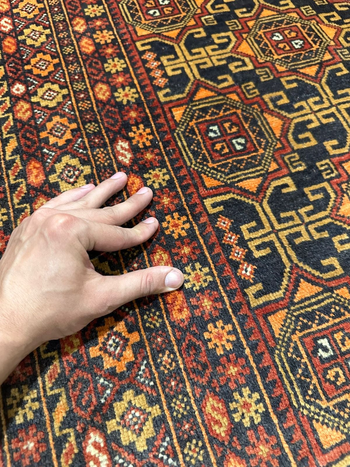 素材:ウール(当店で扱う絨毯は全て手織りです)