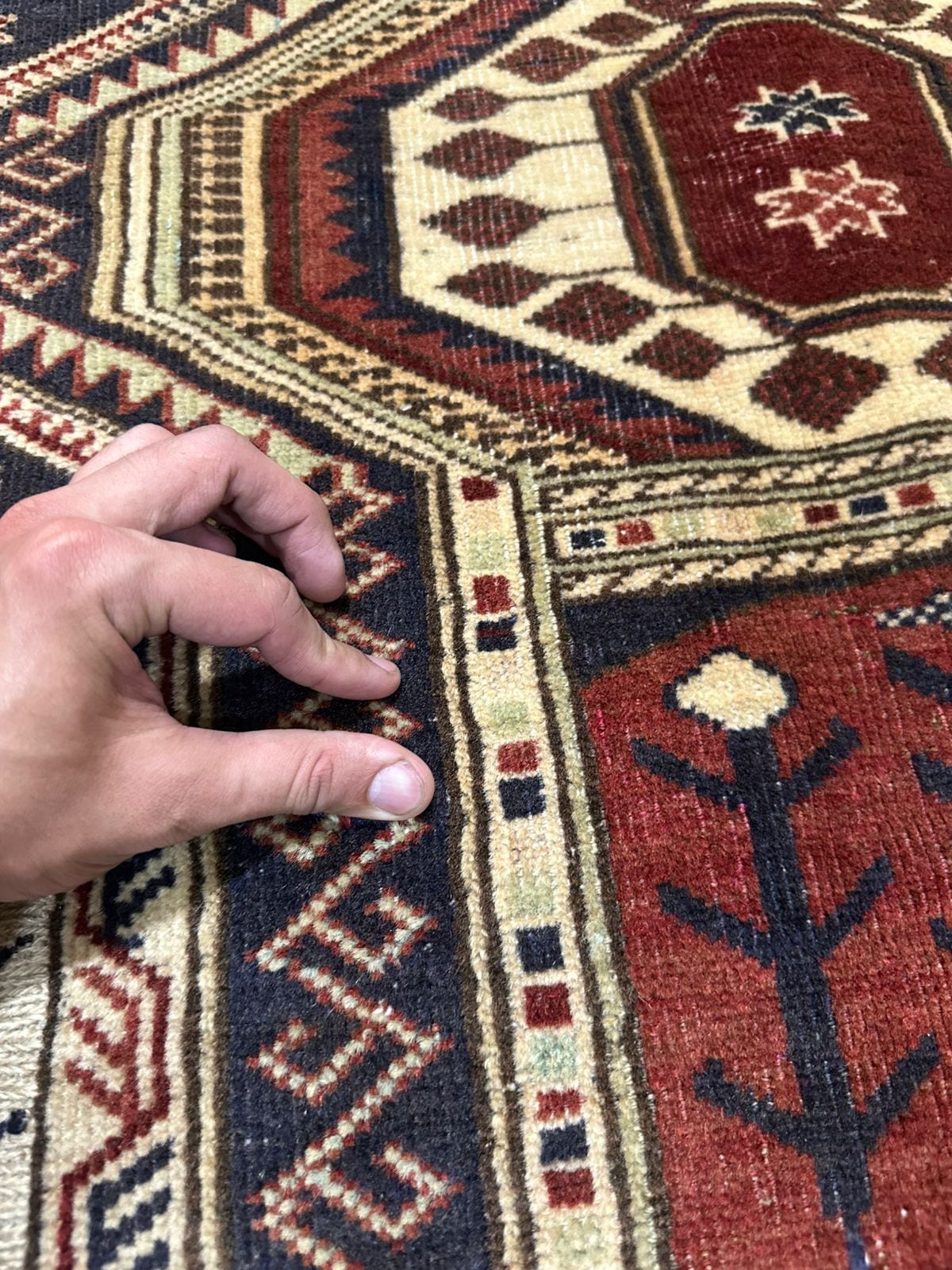 素材:ウール(当店で扱う絨毯は全て手織りです)