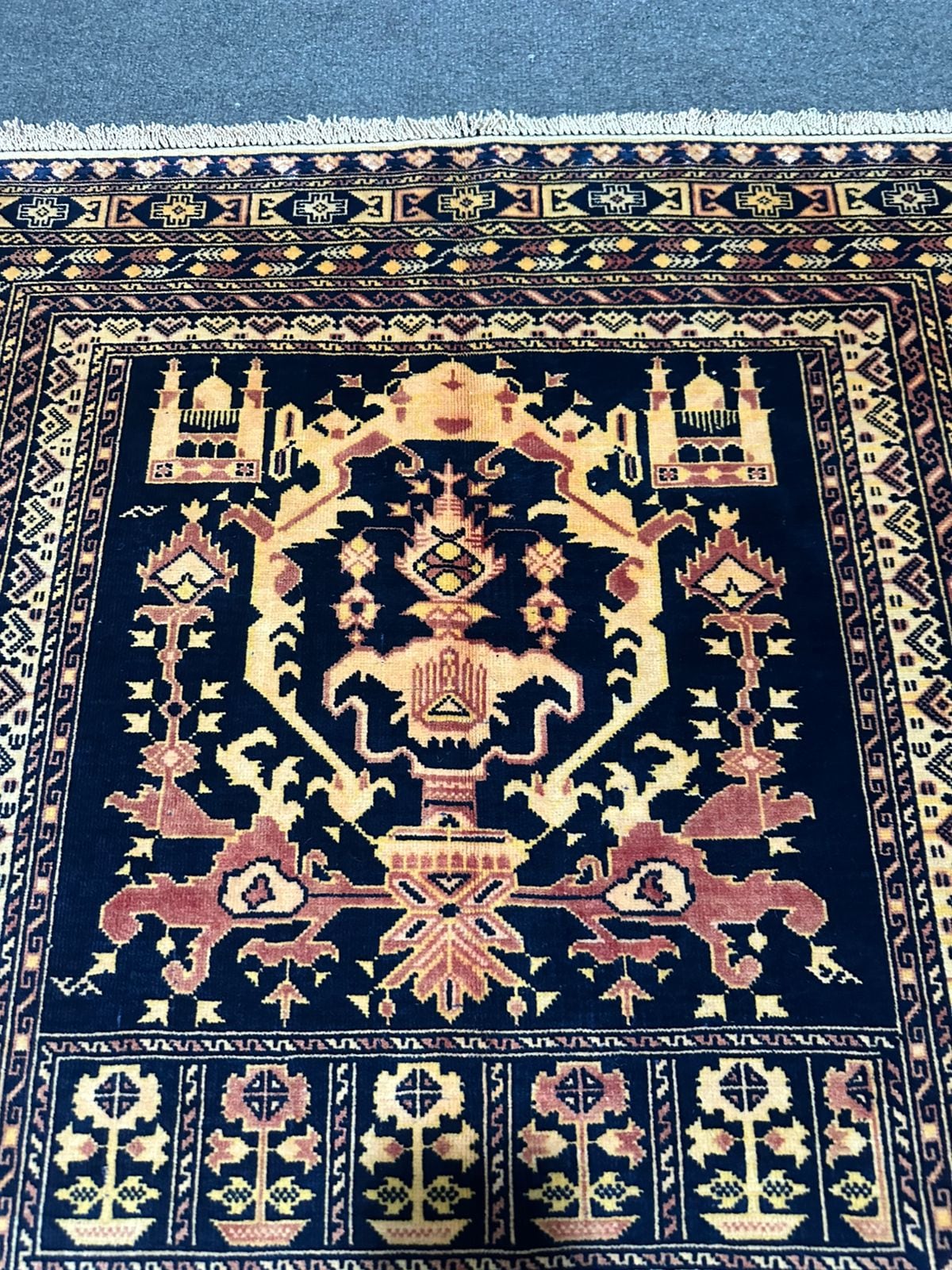 素材:ウール(当店で扱う絨毯は全て手織りです)