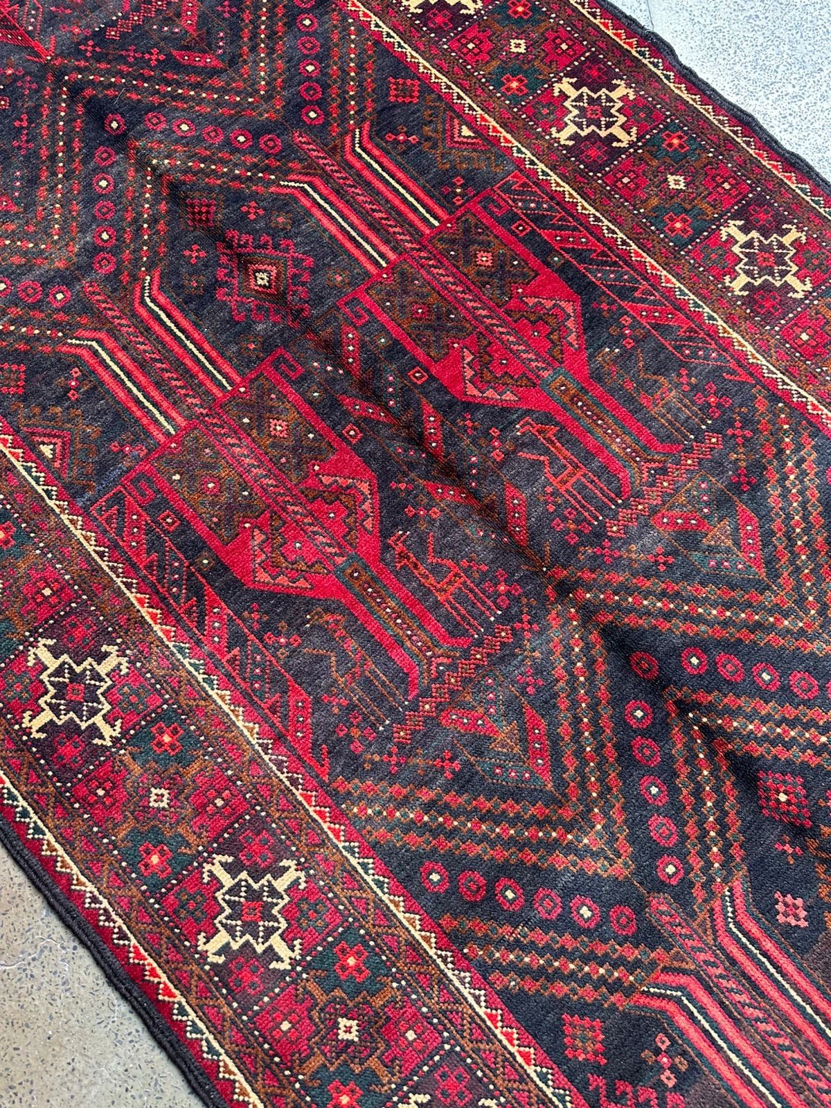絨毯クエスト77【No.216】Tribal rug トライバルラグ ※現在、こちらの商品はパキスタンに置いてあります。ご希望の方は先ずは在庫のご確認をお願いします。