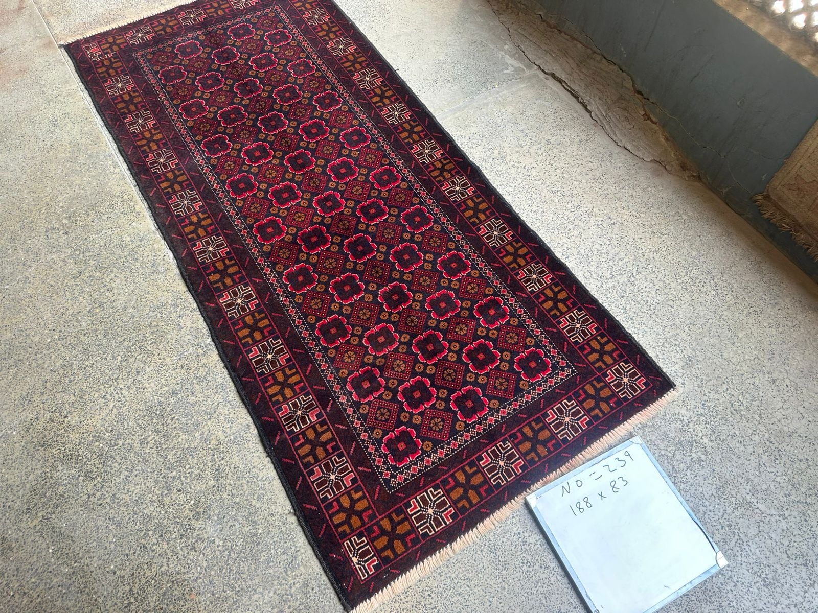 絨毯クエスト77【No.239】Tribal rug トライバルラグ ※現在、こちらの商品はパキスタンに置いてあります。ご希望の方は先ずは在庫のご確認をお願いします。