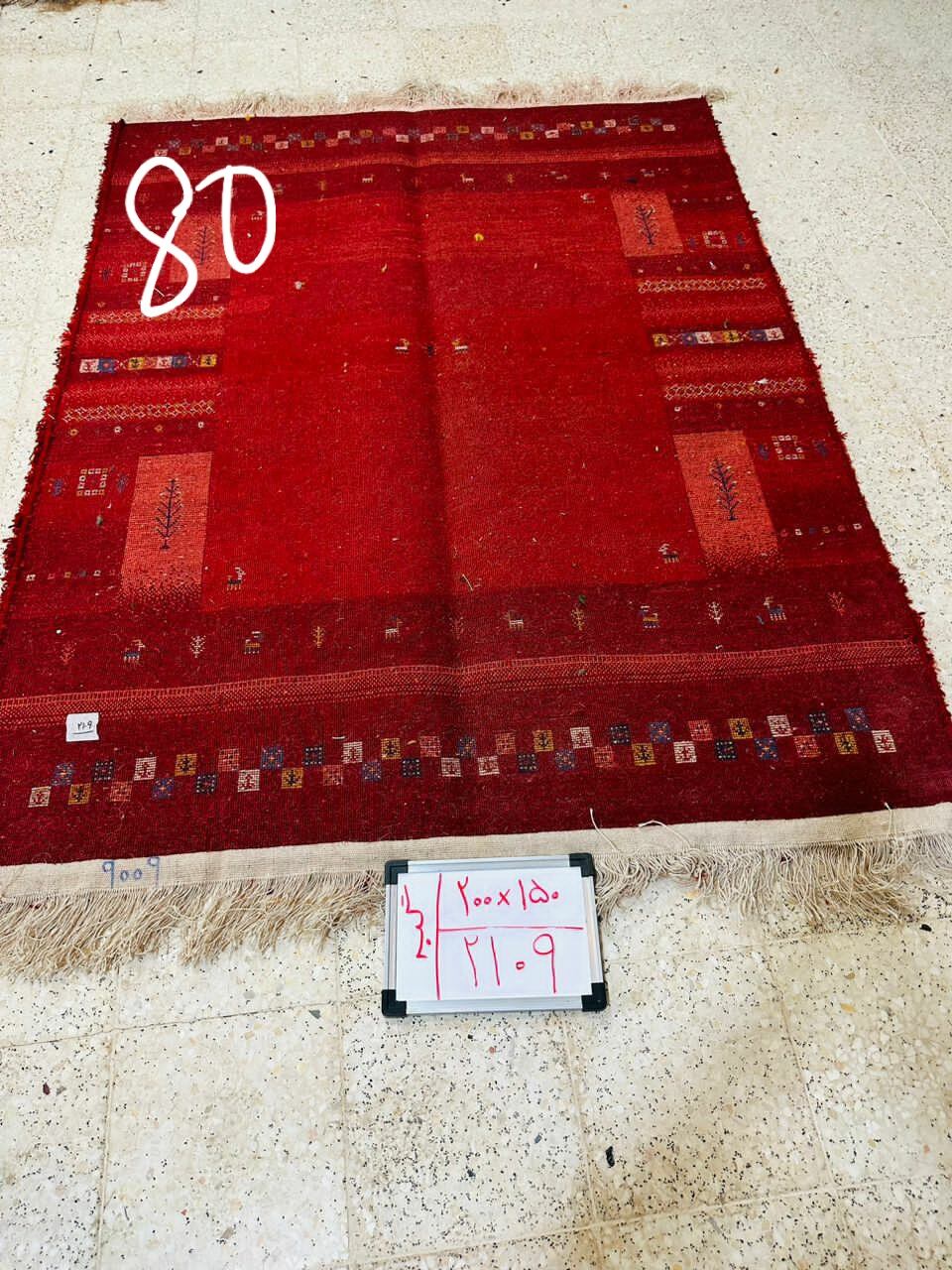 織りたてギャッベ【No.80】Gabbeh ※シャーリング(表面カット)前につき裏面の画像です。現在、こちらの商品はイランに置いてあります。ご希望の方は先ずは在庫のご確認をお願いします。