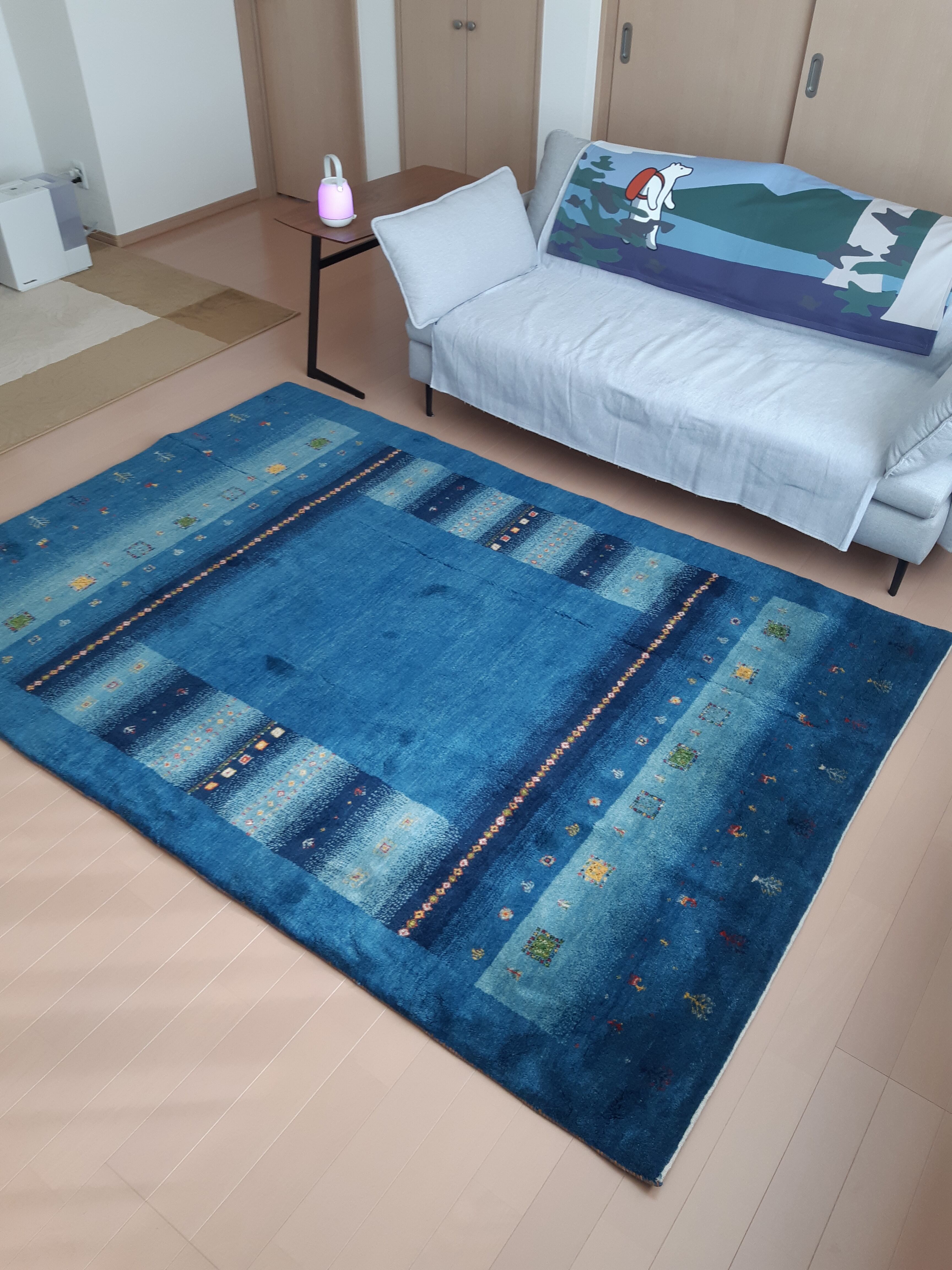 KN様、ありがとうございます。★心が落ち着く青★《動画有り》【No.155】Gabbeh Riz (細かい織り) 青 織りたてギャッベ【No.R46】で紹介